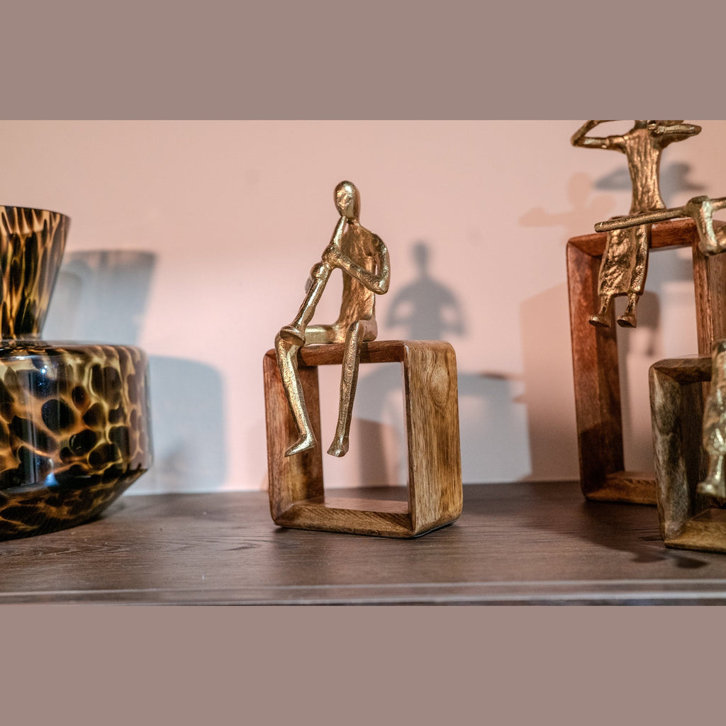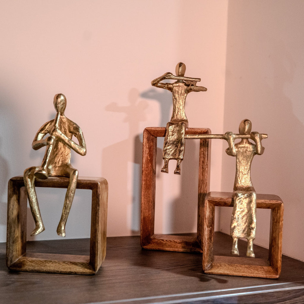 Make a bold statement with this abstract brass coloured sculpture, blending spiritual symbolism with modern design. Ideal for art and music lovers and collectors of unique metalwork.