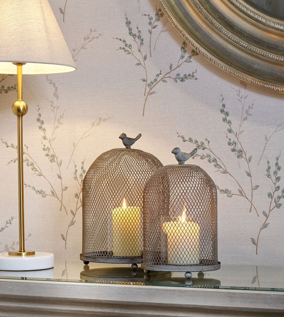 Elevate your decor with this set of 2 birdcage-inspired Vintage Bell Candleholders, each adorned with a stylish mesh lid.