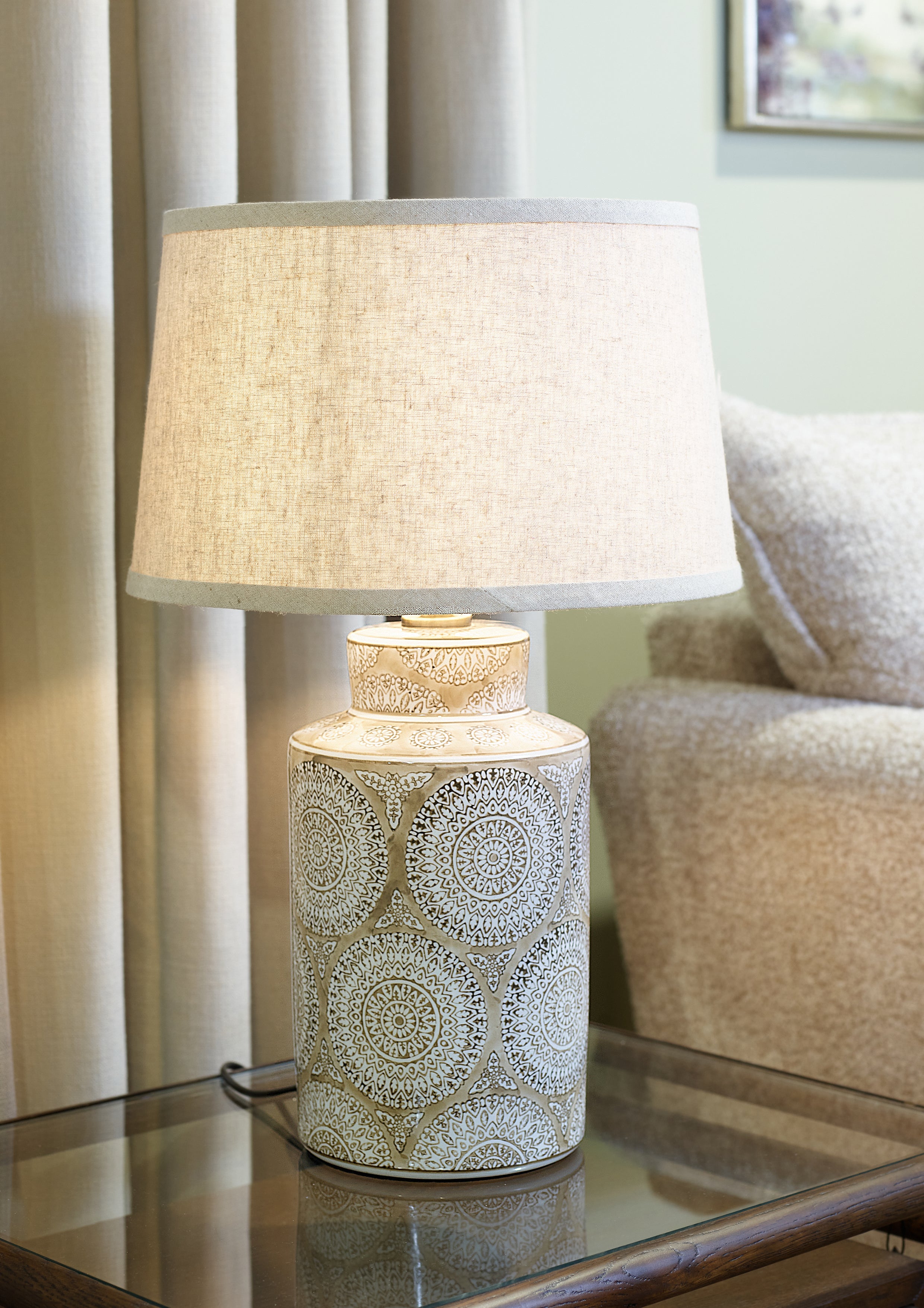 Introducing the Farhan Lamp, a sophisticated addition to any space. The unique design features a beige shade, providing a warm and inviting ambiance. Crafted with expert precision, this lamp adds a touch of elegance to your home decor.