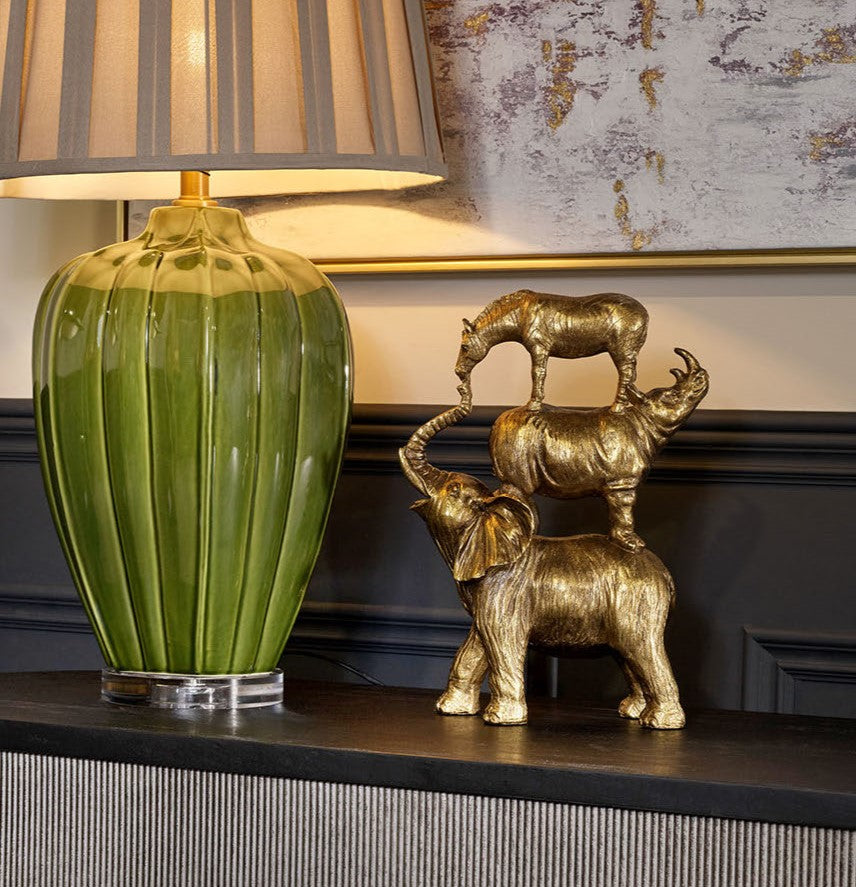 Enhance your decor with this charming gold stacked Jungle Animals sculpture.